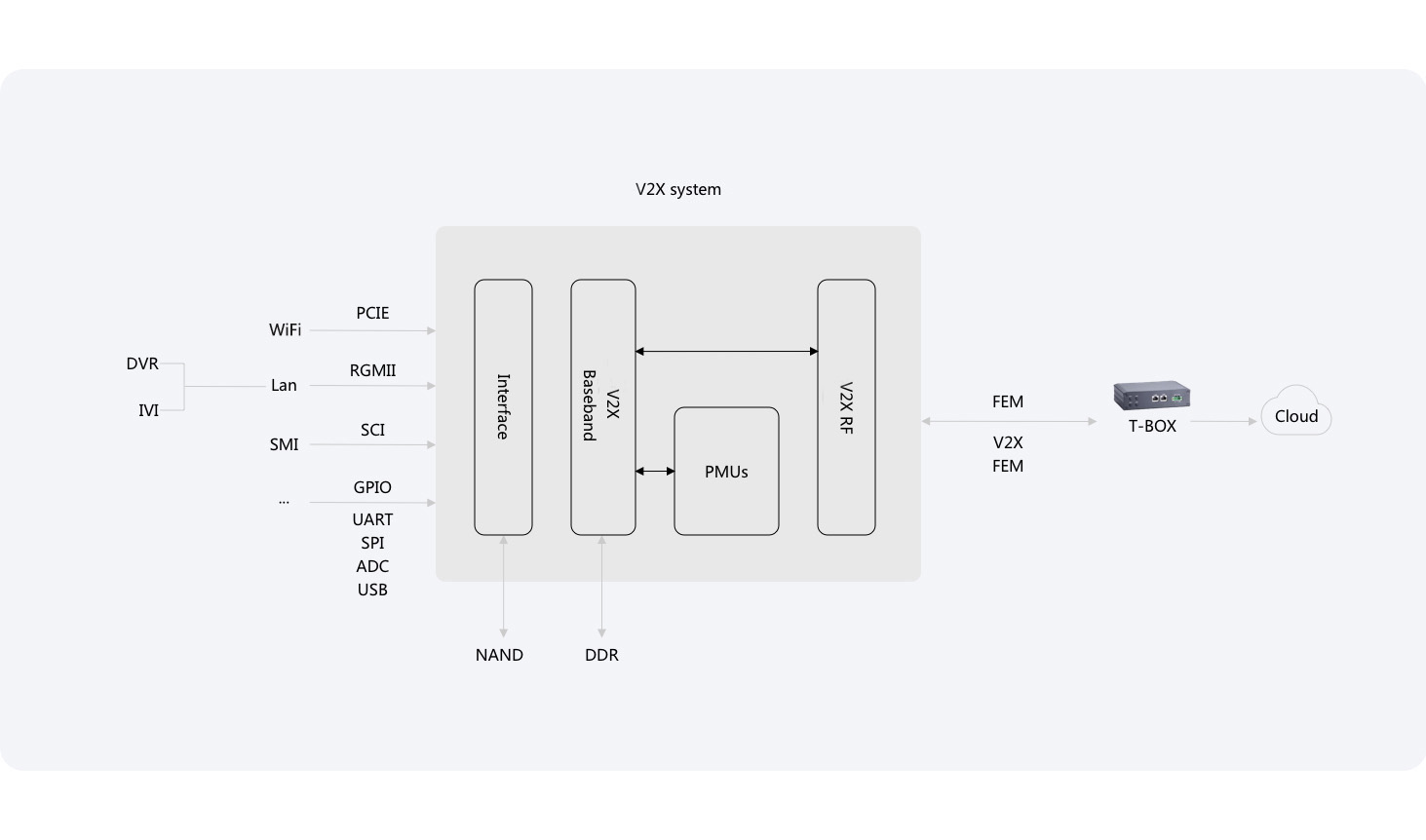 - V2X connectivity and Uu+PC5+AP all-in-one